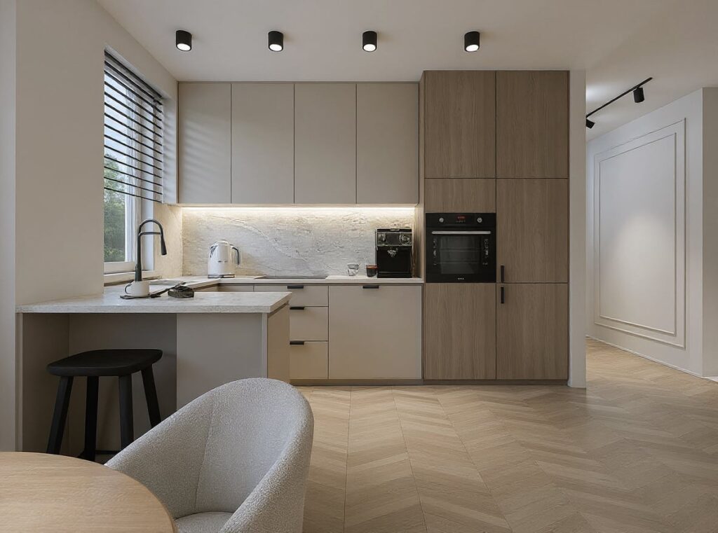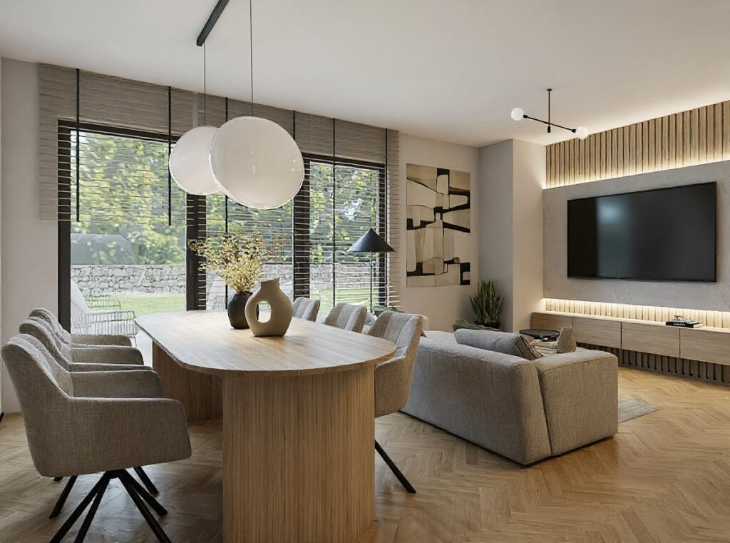 Projekt wnętrz apartamentu dla 3-osobowej rodziny – funkcjonalność i elegancja w ciepłej oprawie