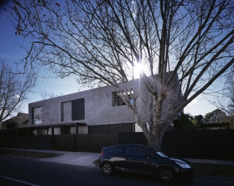 Nowoczesna rezydencja mieści się w Melbourne w Australii .Front domu w dość zamkniętej formie kontrastuje…