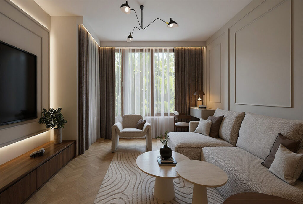 This apartment design in Garnizon, Gdańsk, shows that even in a limited space, it is possible to create a modern, refined interior with a distinctive character. It is an example of how professional apartment design can combine design, functionality, and comfort in one coherent concept.