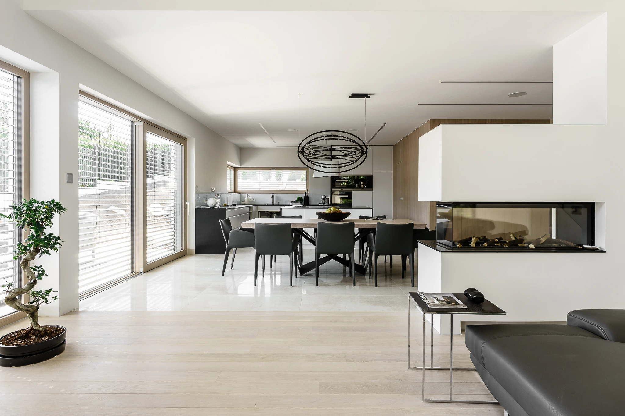 When designing interiors for homes in Gdańsk, Sopot, Gdynia, and nearby towns, we try to focus not on what we find, but on what we want to leave our clients with. We pay attention to the smallest details, from the finish of the wall above the kitchen countertop to the lighting of the house, because these are the things that determine how a given space will be perceived by its users. The appropriate division into zones, aimed at ensuring the right level of comfort for rest, study, work, or sleep, allows for the most effective use of the house.