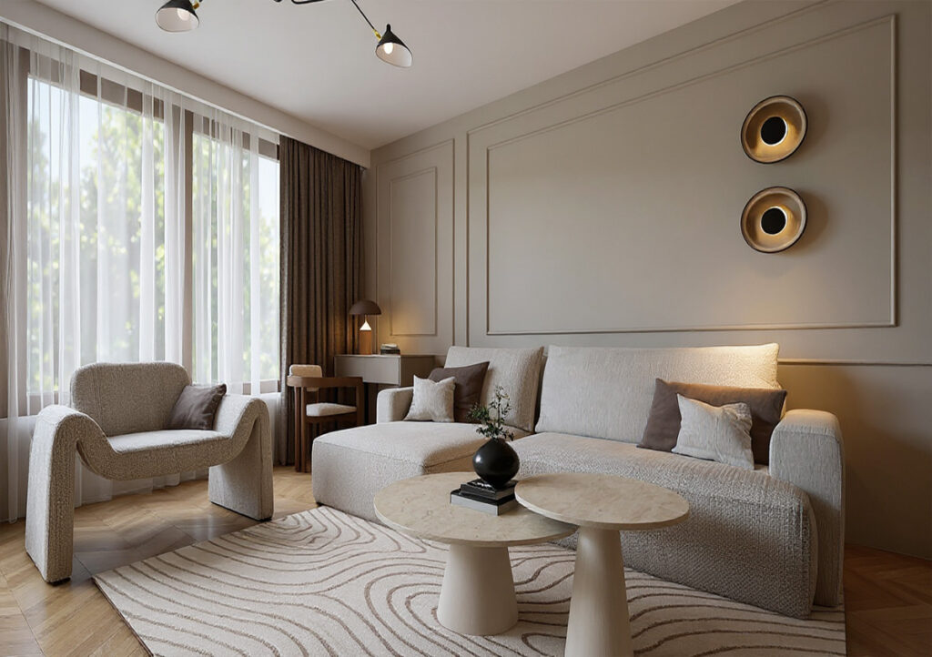 Na podstawie wybranego układu funkcjonalnego tworzę spójną koncepcję estetyczną. Obejmuje ona: